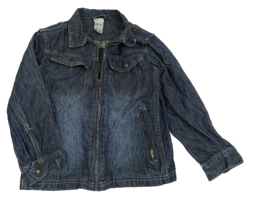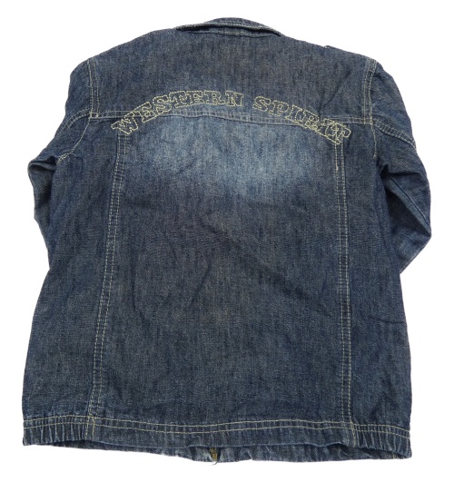 Tmavomodrá rifľová bunda s nápisom