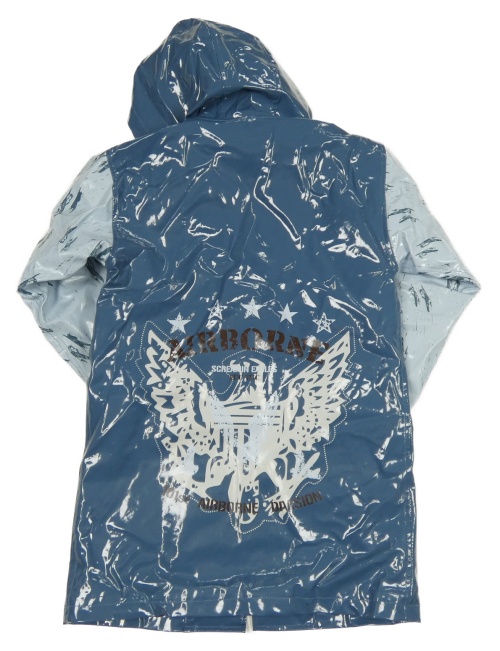 Modro-světlemodrá podšitá pláštěnka s orelom a kapucňou