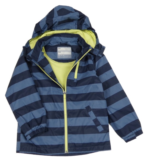 Tmavomodrá pruhovaná šušťáková jarná bunda s kapucňou tcm
