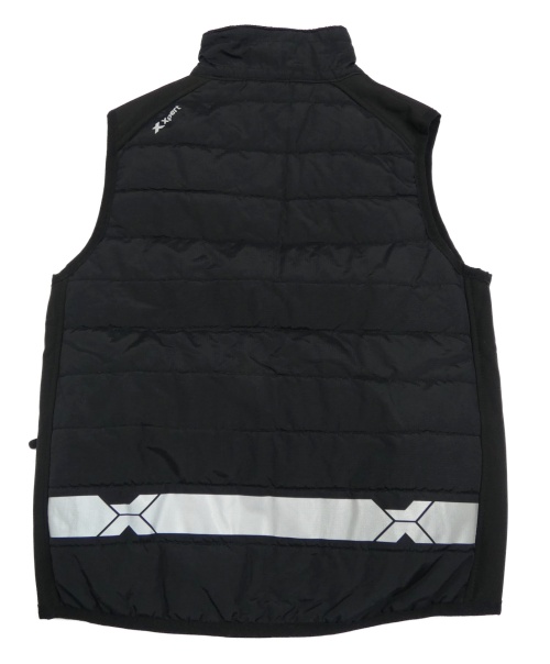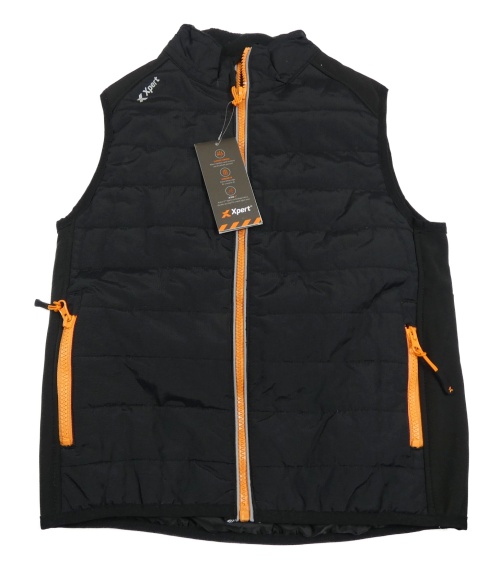 Nové - Čierna šušťáková prešívaná zateplená vesta s oranžovými zipy