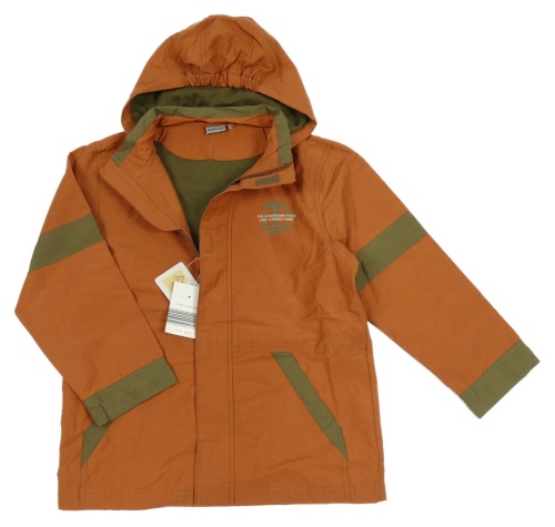 Nové - tehlovo-hnedá šušťáková jarná bunda s nápismi a odopínacíá kapucňou alive