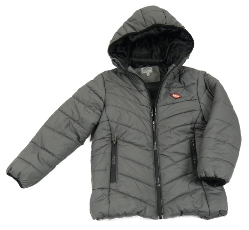 Tmavosivá šušťáková zateplená bunda s logom a kapucňou Lee Cooper