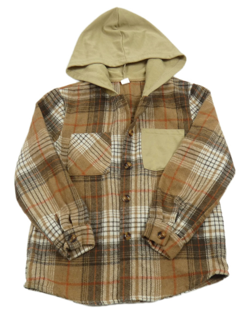 Hnedo-béžová kockovaná úpletová košeľová bunda s kapucňou