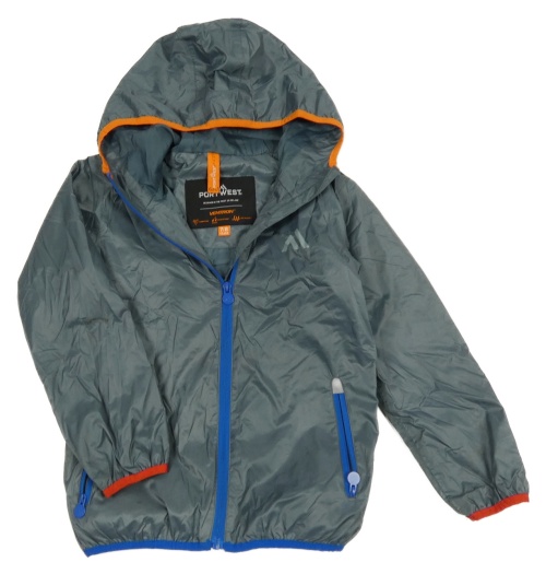 Sivá šušťáková jarná bunda s logom a kapucňou Portwest
