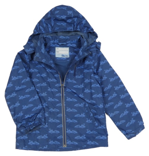 Tmavomodrá šušťáková jarná bunda s formulami a kapucňou TCM