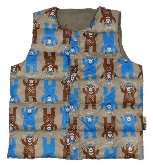 Hnedá šušťáková prešívaná zateplená vesta s medvedíkmi