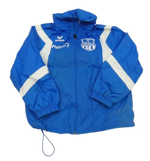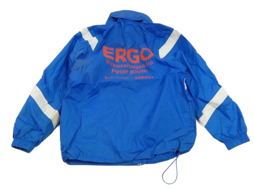 Modro-biela šušťáková jarná bunda s nápismi a kapucňou Erima