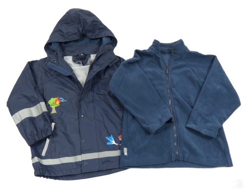 2set - Tmavomodrá nepromokavá jarná bunda s hasiči a kapucí + fleecová mikina