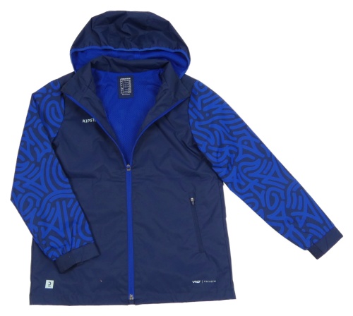• Tmavomodro-zafírová šušťáková športová funkčná bunda so vzorom a kapucňou Kipsta