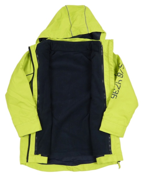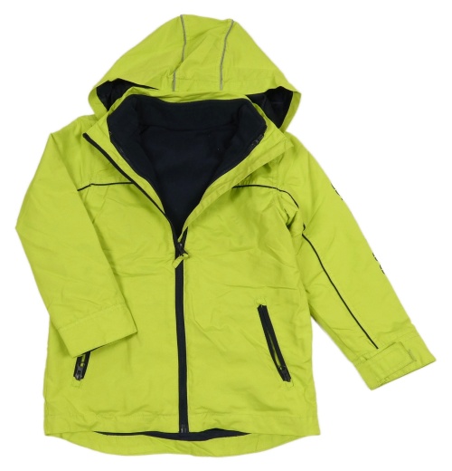 3v1 - Neónově zelená šušťáková celoroční bunda s číslom a kapucí + tmavomodrá fleecová prepínaci mikina Topolino