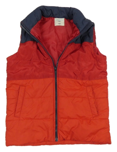 Červeno-tmavomodrá šušťáková zateplená vesta
