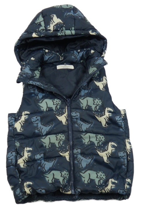 • Tmavomodrá prešívaná šušťáková zateplená vesta s dinosaurami a odopínacíá kapucňou H&M