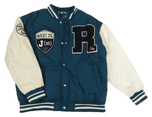 Petrolejovo-smotanová šušťáková zimná bunda s nášivkami Zara