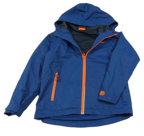 Tmavomodro-oranžová šušťáková jarná bunda s nápisom a kapucňou