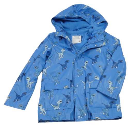 Modrá nepromokavá lehce zateplená bunda s dinosaurami a kapucňou Primark
