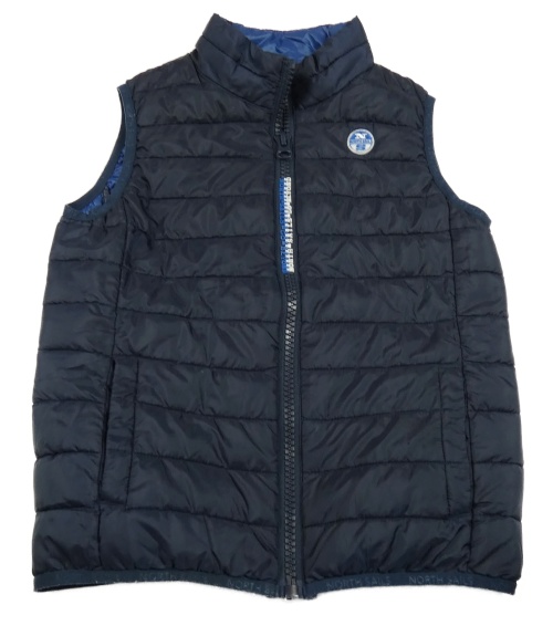 Tmavomodrá šušťáková zateplená vesta s nášivkou