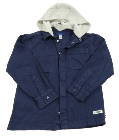 Tmavomodrá plátenná košeľová bunda s sivou teplákovou kapucňou okaidi