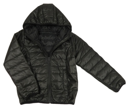 Čierna šušťáková prešívaná zateplená bunda s kapucňou