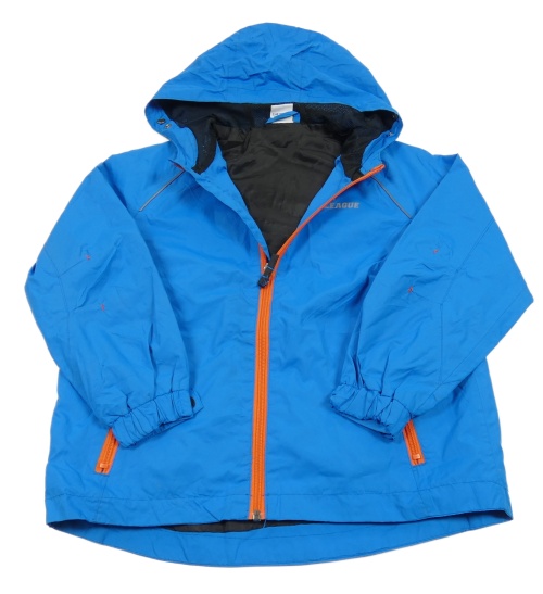 Modrá šušťáková jarná bunda s nápisom a kapucňou Pocopiano