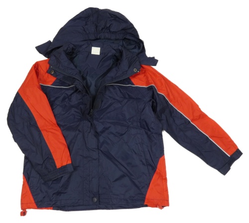 Tmavomodro-červená šušťáková bunda s kapucňou