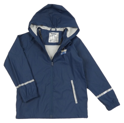 Tmavomodrá nepromokavá bunda s buldozerem a kapucňou lupilu
