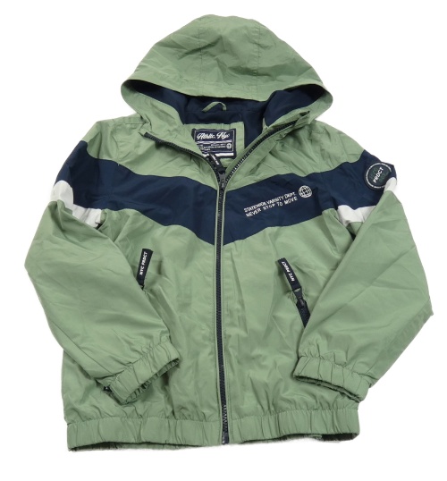 Zeleno-modrá šušťáková jarná bunda s nápismi a kapucňou C&A