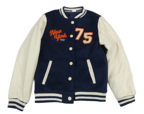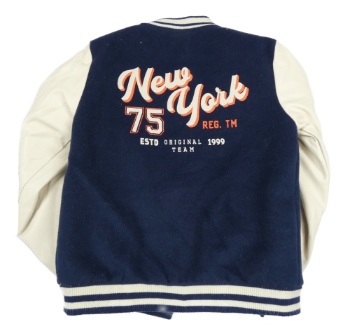 Tmavomodro-smotanová fleecovo/koženková jarná baseballová bunda s číslom Zeeman