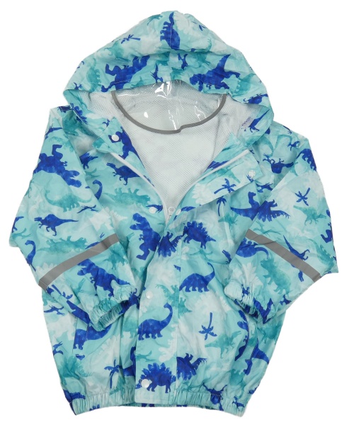 Mintová vodeodolná šušťáková bunda s dinosaurami a kapucňou