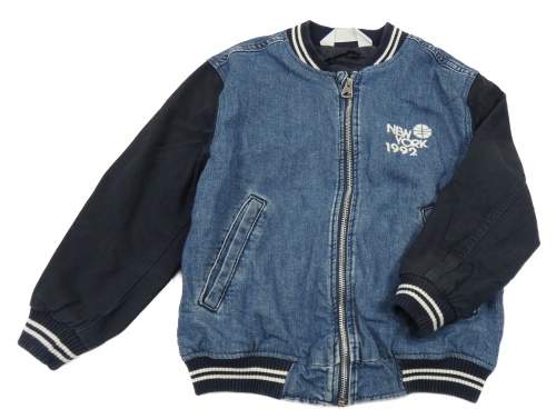 Modro-tmavomodrá riflovo/plátěná podšitá bunda s nápisom H&M
