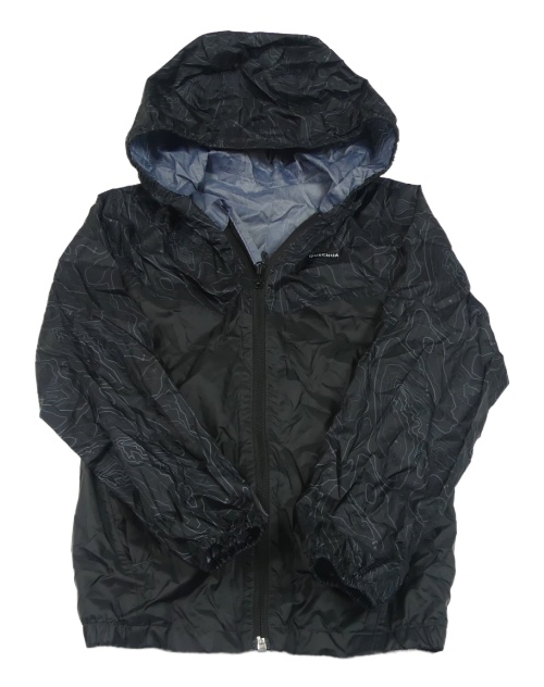 Čierno-vzorovaná šušťáková nepromokavá bunda s kapucňou Quechua