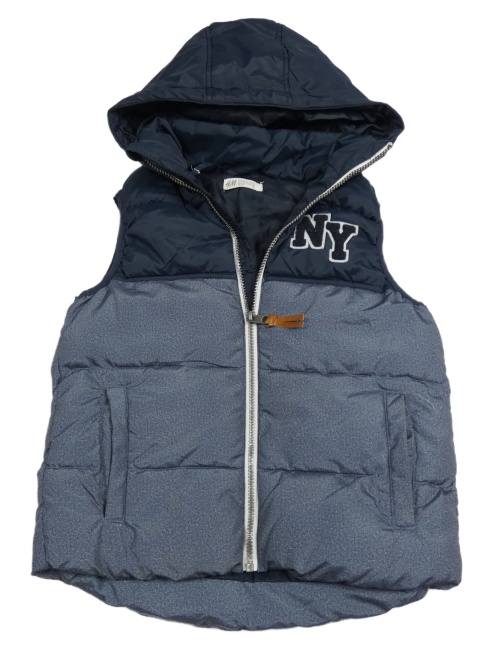 Tmavomodro-melírovaná šušťáková zateplená vesta s kapucňou H&M