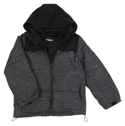 Sivo-čierna šušťáková prešívaná zimná bunda so vzorom a kapucňou Primark