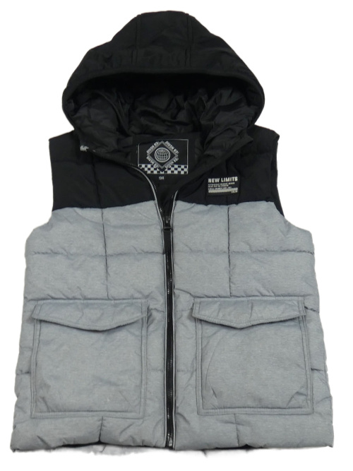 Čierno-sivá šušťáková zateplená vesta s nášivkou a kapucňou C&A