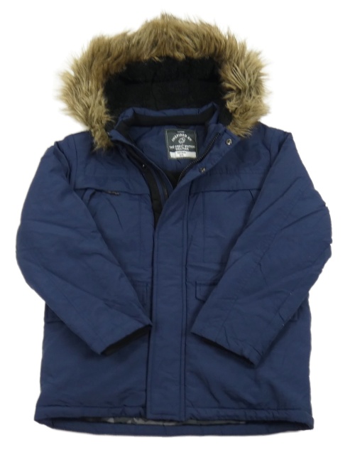 Tmavomodrá šušťáková zimná bunda s kapucňou s kožešinou George