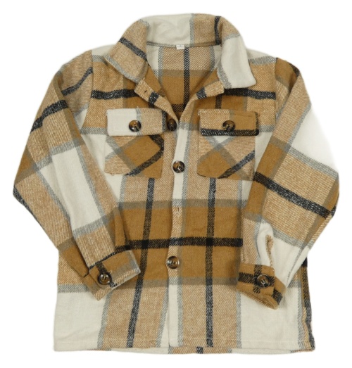 Hnedo-bielo-sivá kockovaná košeľová bunda
