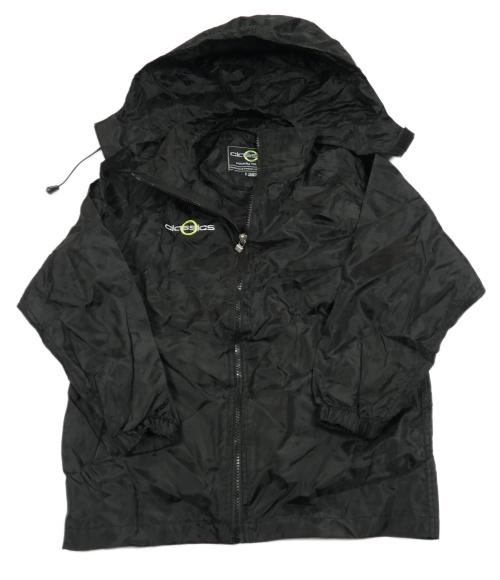 Čierna šušťáková športová bunda s nápisom a ukrývací kapucňou