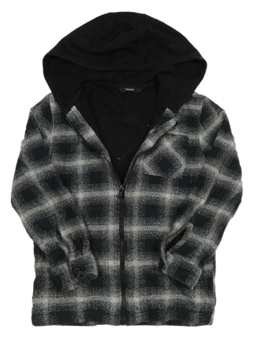 Čierno-sivá kockovaná flanelová košeľová bunda s kapucňou George
