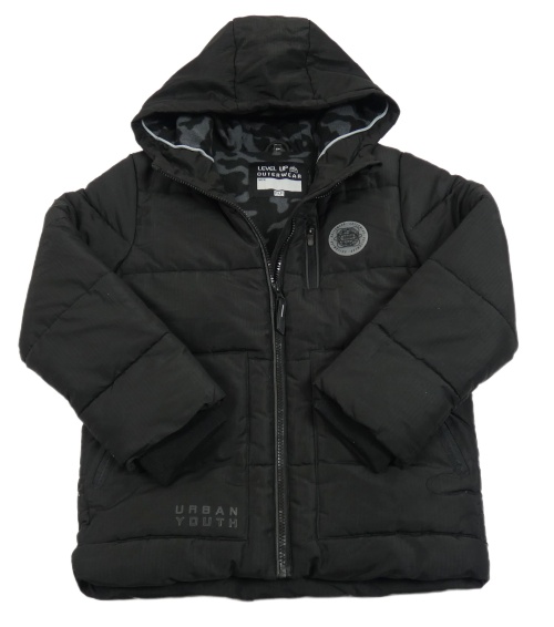 Čierna kockovaná šušťáková zimná bunda s nášivkou a kapucňou F&F
