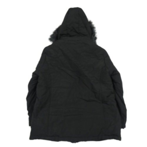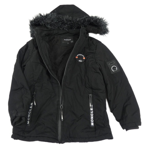 Čierna šušťáková zateplená bunda s nášivkami a kapucňou s kožešinou