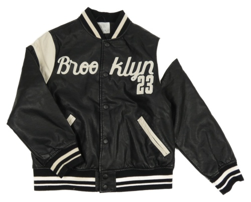 Čierno-biela koženková lehce zateplená bunda s nápisom Zara