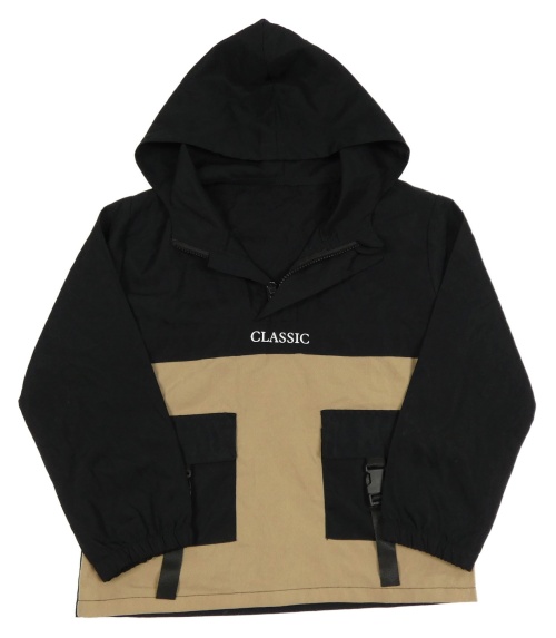 Čierno-hnedá šušťáková bunda s vreckami a kapucňou