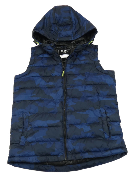 Tmavomodro-čierna army šušťáková zateplená vesta s kapucňou Matalan