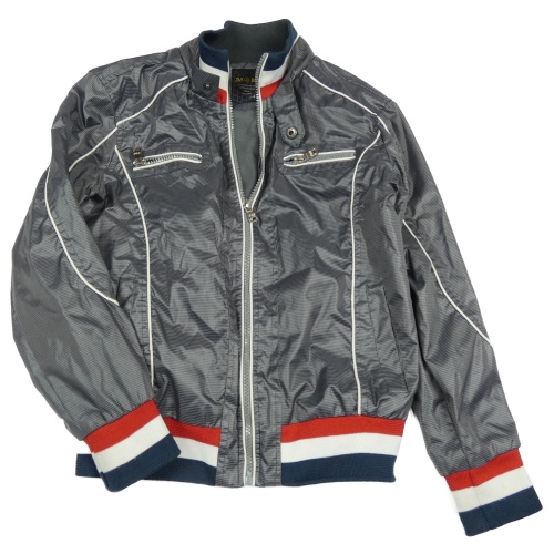 Sivá šušťáková vzorovaná jarná bunda s pruhmi
