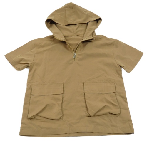 Hnedá šušťáková vesta s vreckami a kapucňou