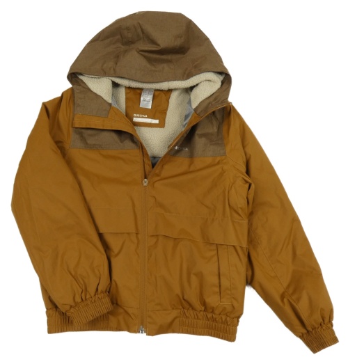 Hnedá šušťáková funkčná zateplená bunda s kapucňou Quechua