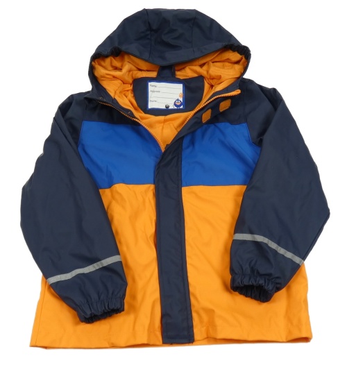 Tmavomodro-modro-oranžová nepromokavá jarná bunda s kapucňou Kiki&Koko