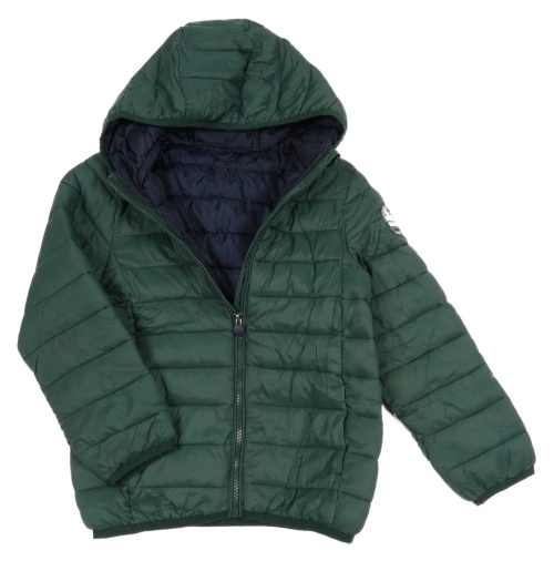• Smaragdová prešívaná šušťáková jarná zateplená bunda s nášivkou a kapucňou Vertbaudet