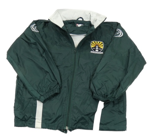 Smaragdovo-biela šušťáková jarná športová bunda s erbem a ukrývací kapucňou lotto