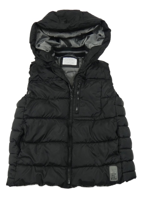 Čierna šušťáková zateplená prešívaná vesta s nášivkou a kapucňou Zara