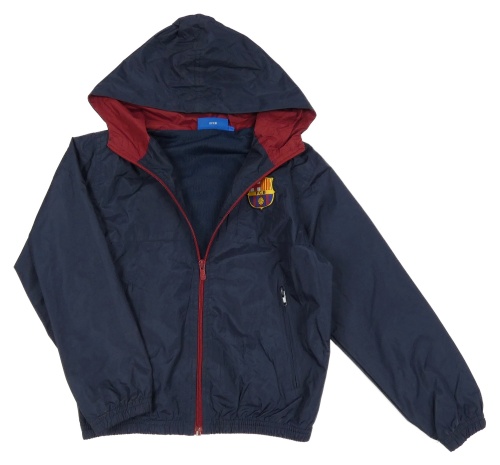 Tmavomodrá šušťáková futbalová bunda s kapucí - F.C.B
